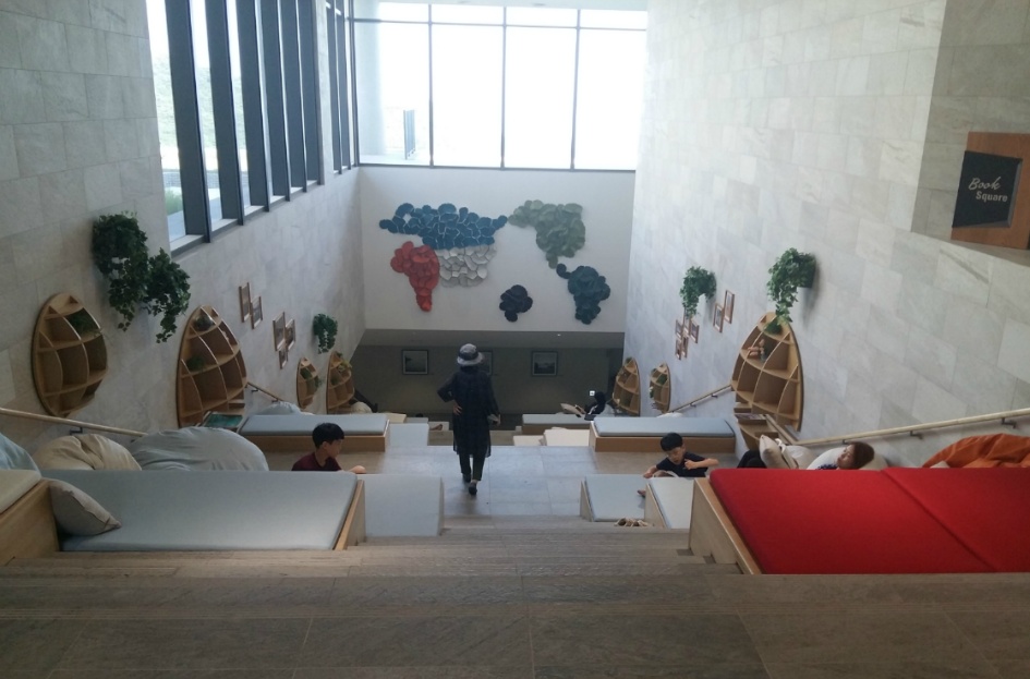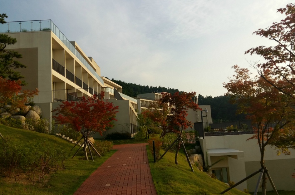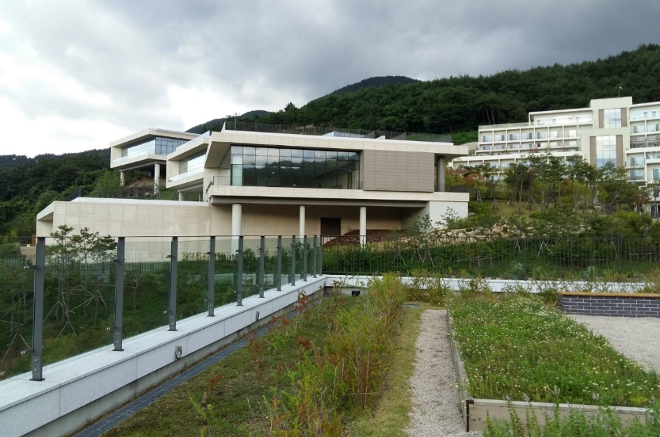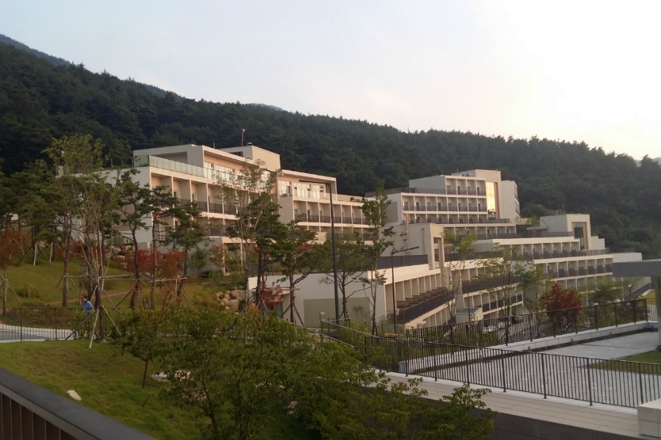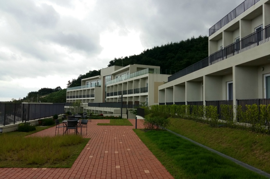 2017년 오픈한 수련원은 빈동, 채움동, 나눔동으로 나누어져 있으며, 숙박시설은 빈동, 리셉션과 식당 등의 공용시설은 나눔동, 힐링시설은 북카페와 전망대가 채음동에 있기 때문에 출입국 수속을 하다가 주차장에서 본 시설들… 오른쪽 시설이 나눔동, 왼쪽 건물이 채음동, 저 멀리 가운데 시설이 비음동 숙박시설 .