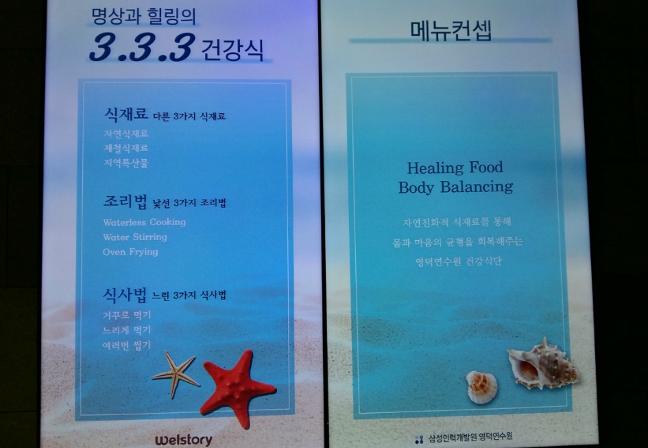메뉴 컨셉은 몸과 마음의 균형을 회복시켜주는 건강한 식단… 아침은 한식, 빵과 씨리얼로, 저녁은 한식으로 준비합니다.