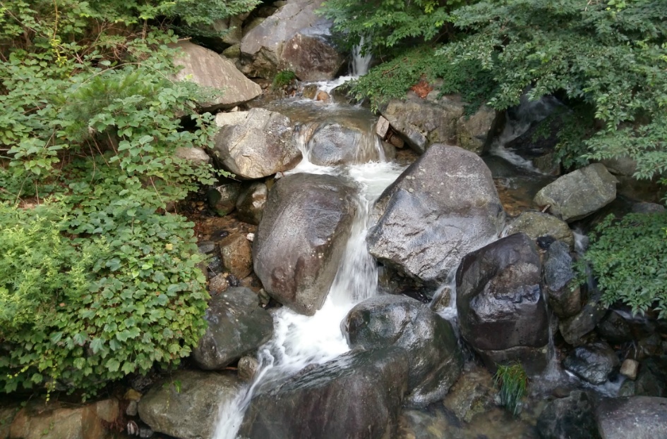 휴양림 주변 계곡에는 물소리가 시끄럽다.