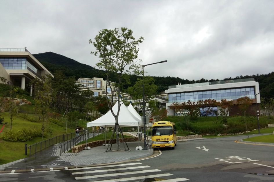 대구에서 영덕, 울진으로 가면 고래불해수욕장 근처에 수련원 입구가 있다. 길을 따라 올라가면 수련원 정문이 나오는데 직원의 안내에 따라 본관으로 들어가 수속을 마치고 배정된 방으로 이동한다. 다음 로딩뷰 사진입니다.