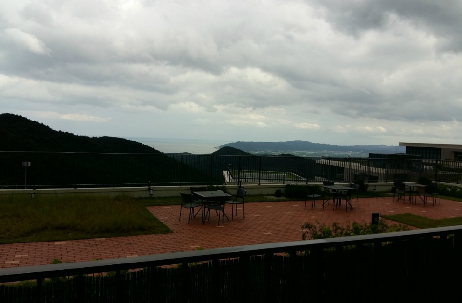 여기에는 WiFi와 유선 인터넷이 없습니다. 스마트폰에서 벗어나 짧은 시간이라도 푹 쉬는 것이 배려일까 발코니로 나가면 야외 휴게공간이 있고 멀리 고래불 동해안 해변이 보인다.