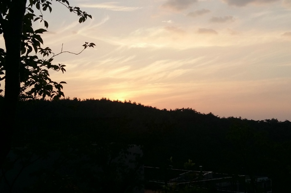 수련원이 동해를 마주하고 있어 아침에 눈부신 동해 일출을 기대하며 일찍 잠자리에 들었지만 일출은 산 뒤에서 시작된다.