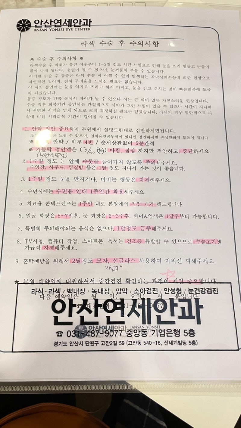 안산연세안과 라섹수술후기(+인공눈물실비청구)