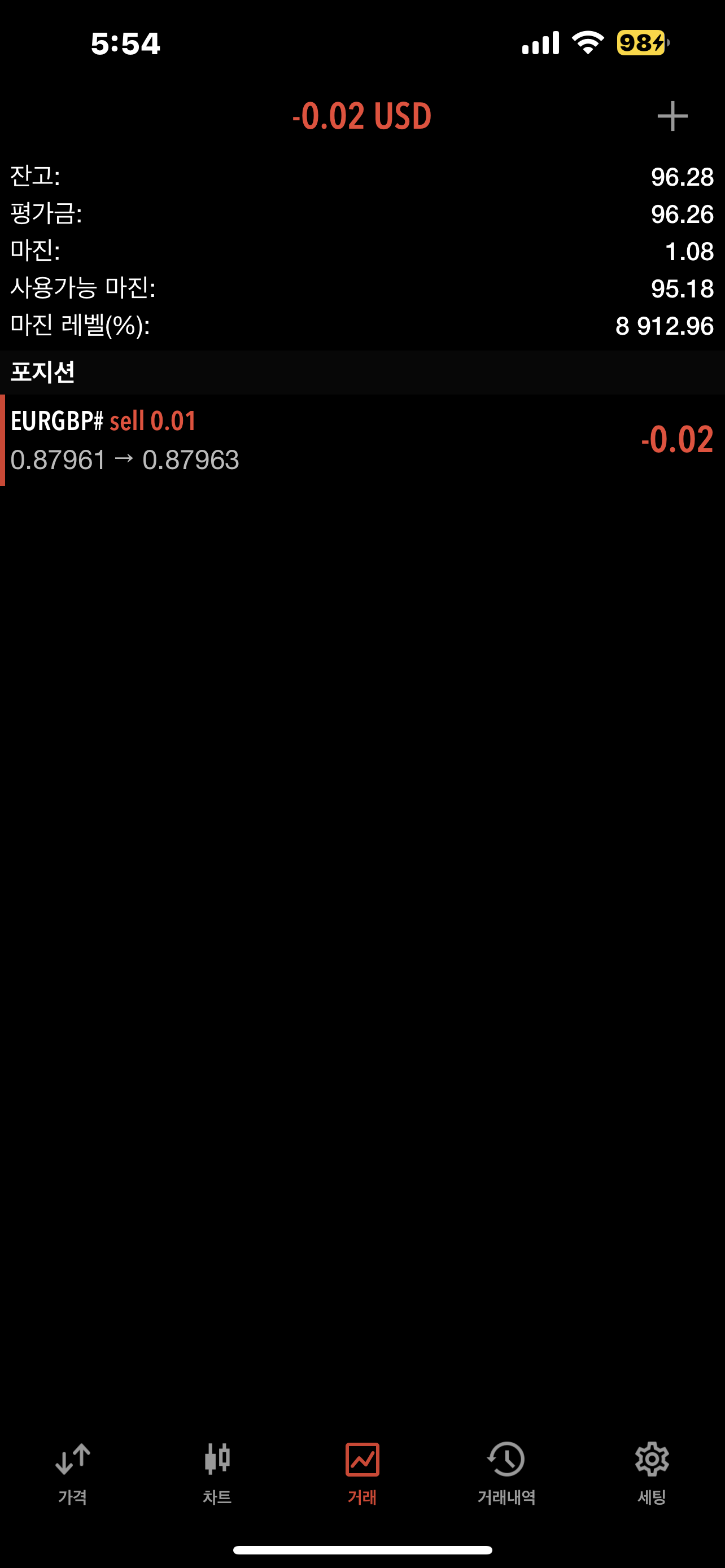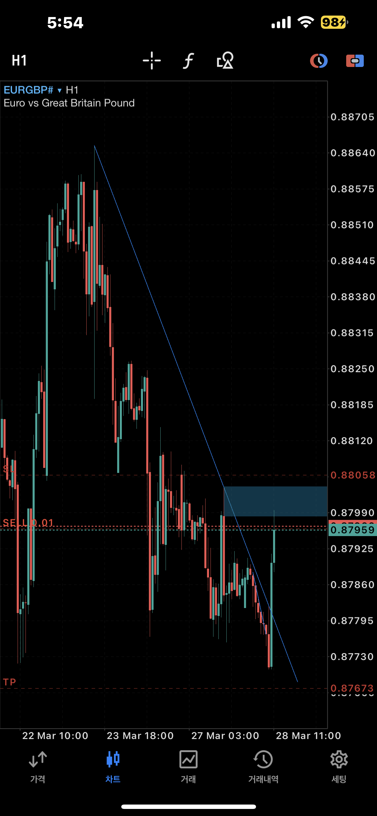 유로/파운드 매도 포지션 입력